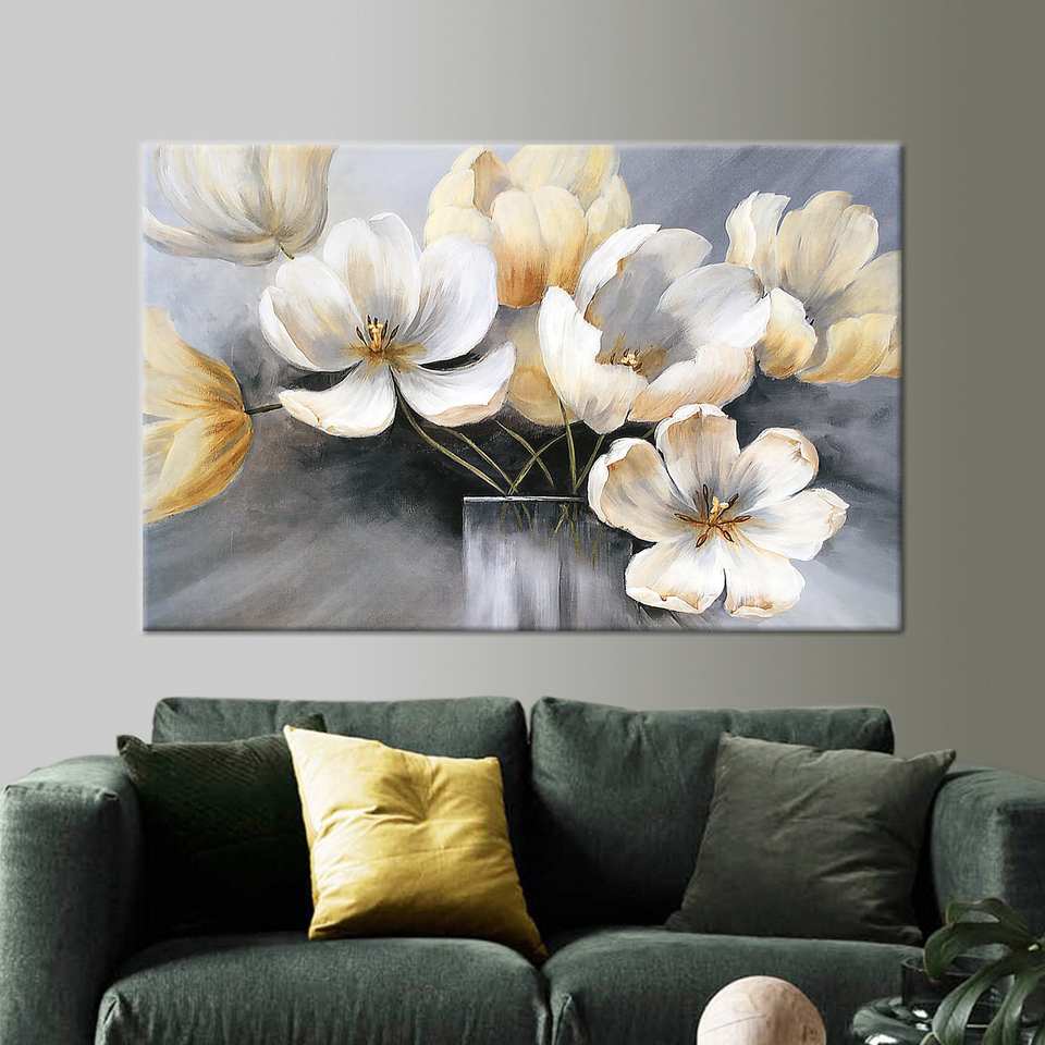 ผ้าใบพิมพ์ลายดอกไม้แบบนามธรรม - ของตกแต่งผนังลายดอกไม้สีสันสดใส,1P:ห่อหุ้มอย่างดี
