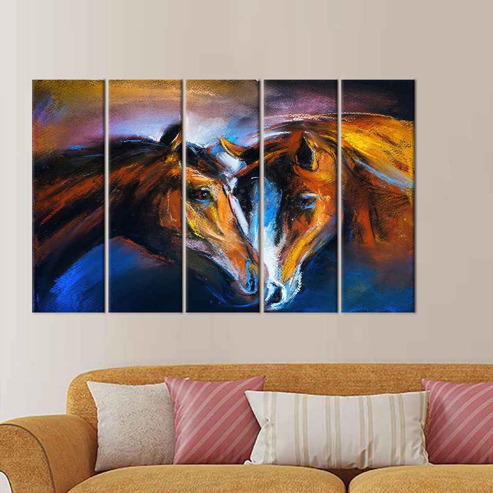 ภาพพิมพ์บนผ้าใบ 3 มิติ รูปม้าแบบนามธรรม | งานศิลปะรูปสัตว์ที่งดงามสำหรับตกแต่งบ้าน,5P:Gallery Wrapped
