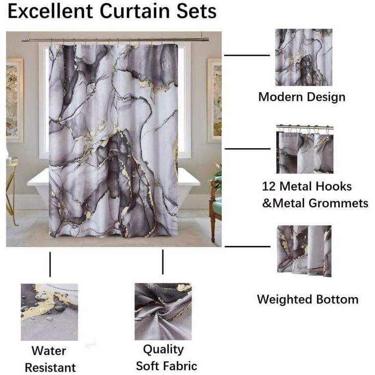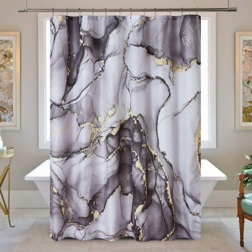 ม่านอาบน้ำลายหินอ่อนแบบนามธรรม ดีไซน์หรูหรา 3 มิติ พร้อมตะขอ 12 อันสำหรับตกแต่งห้องน้ำ วัสดุโพลีเอสเตอร์