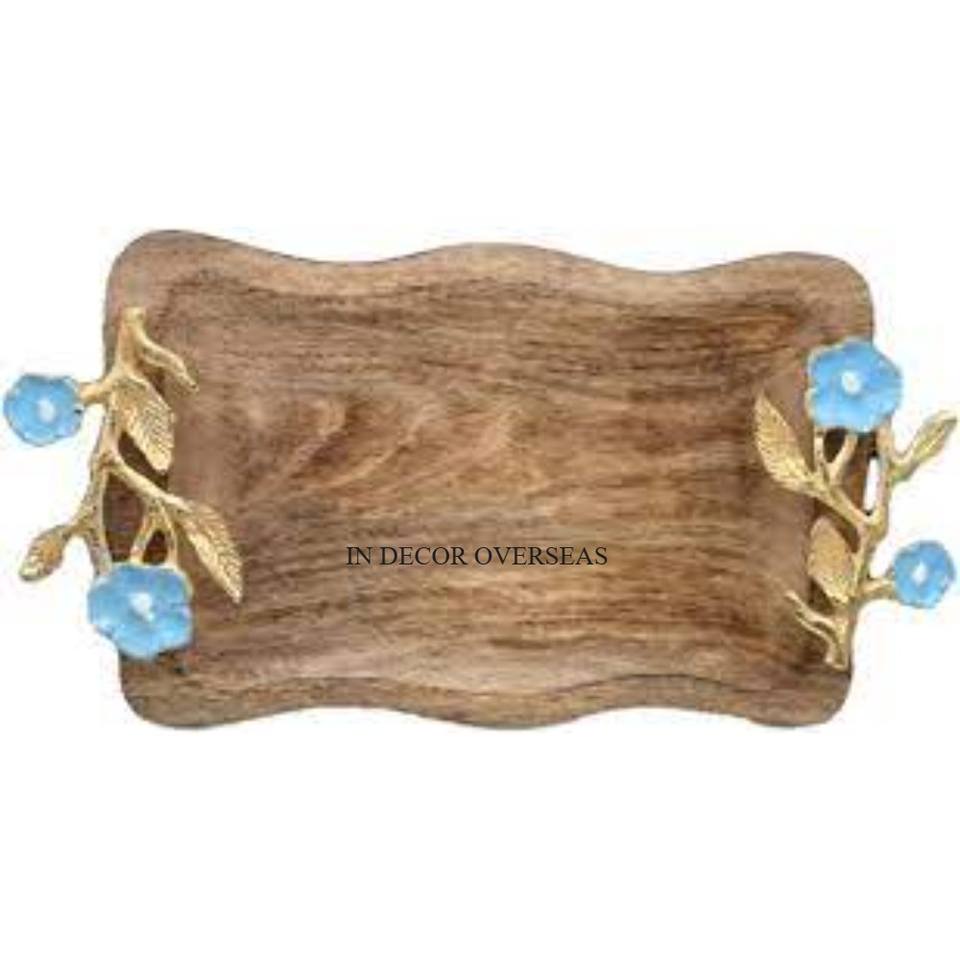 ถาดเสิร์ฟไม้ทรงสี่เหลี่ยมผืนผ้าลายแอบสแตรกต์ดีไซน์แฟนซีสำหรับตกแต่งแบบเคลือบ