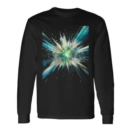 เสื้อยืดแขนยาวลายการระเบิดในอวกาศแบบนามธรรม ศิลปะการระเบิดทางจักรวาลที่สดใส ซูเปอร์โนวา