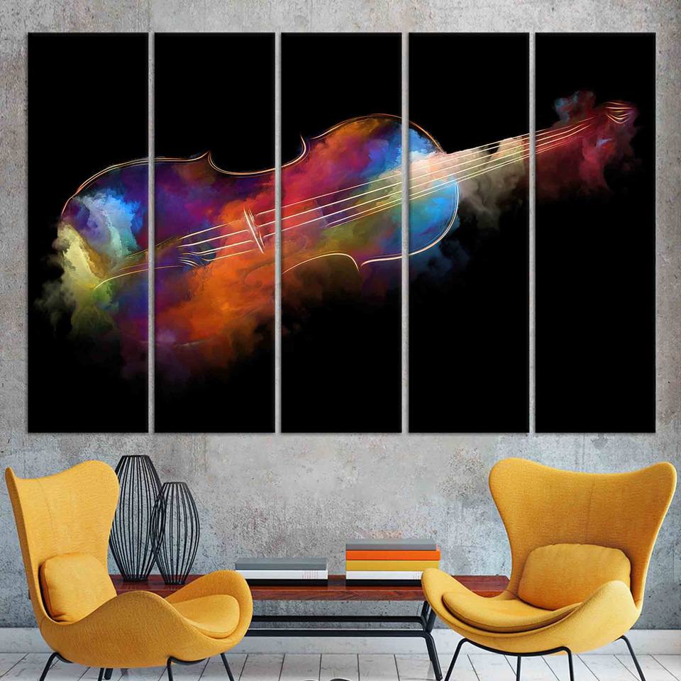 ศิลปะบนผืนผ้าใบลายไวโอลินแบบนามธรรม: ภาพพิมพ์ของขวัญสำหรับคนรักดนตรีบนกระจกนิรภัย ชุดผ้าใบ 5 ชิ้น