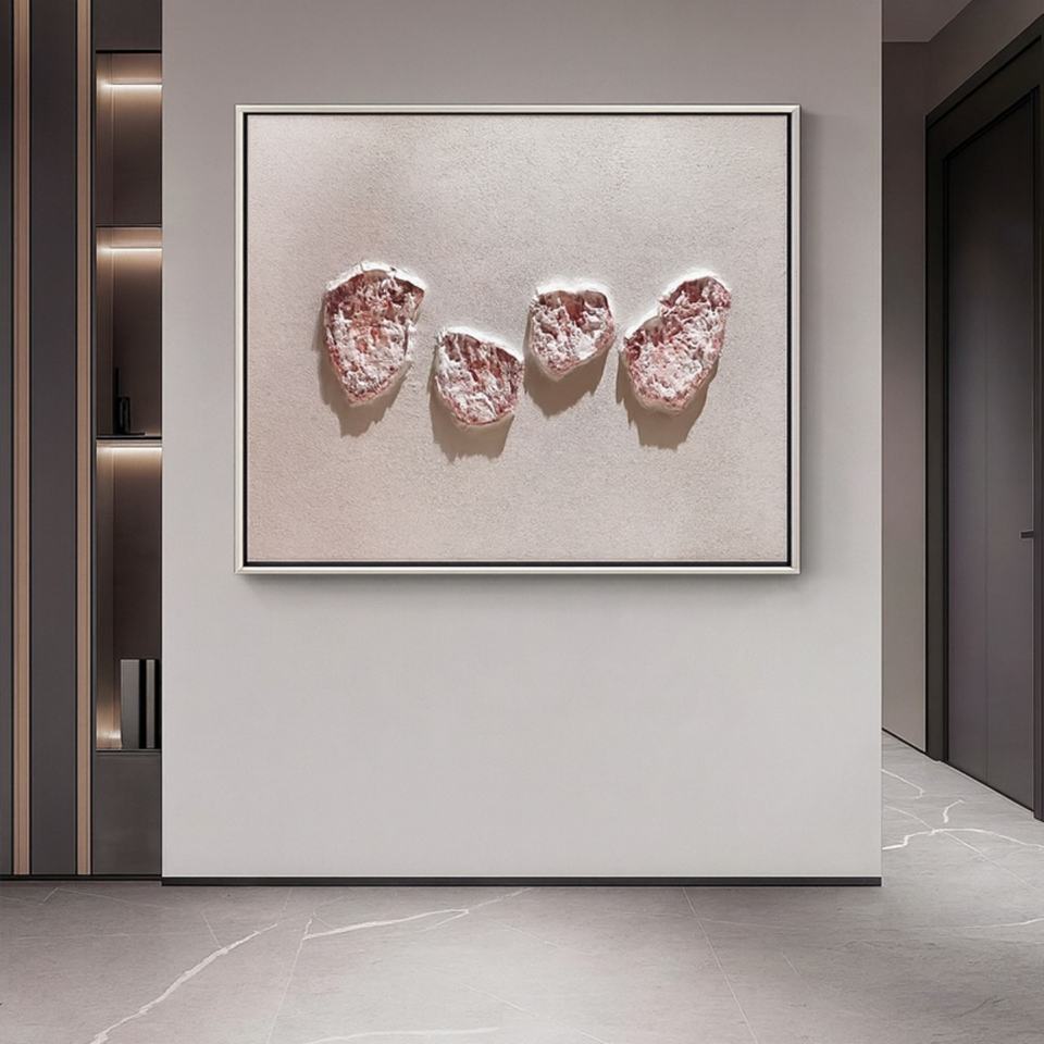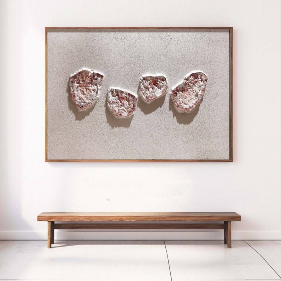 ภาพวาดตกแต่งผนังสไตล์วาบิซาบิแบบนามธรรม งานแฮนด์เมด 100% วัสดุยิปซัมอะคริลิก ลวดลายสามมิติ ตกแต่งบ้านสไตล์โมเดิร์น