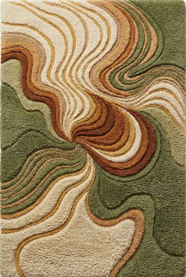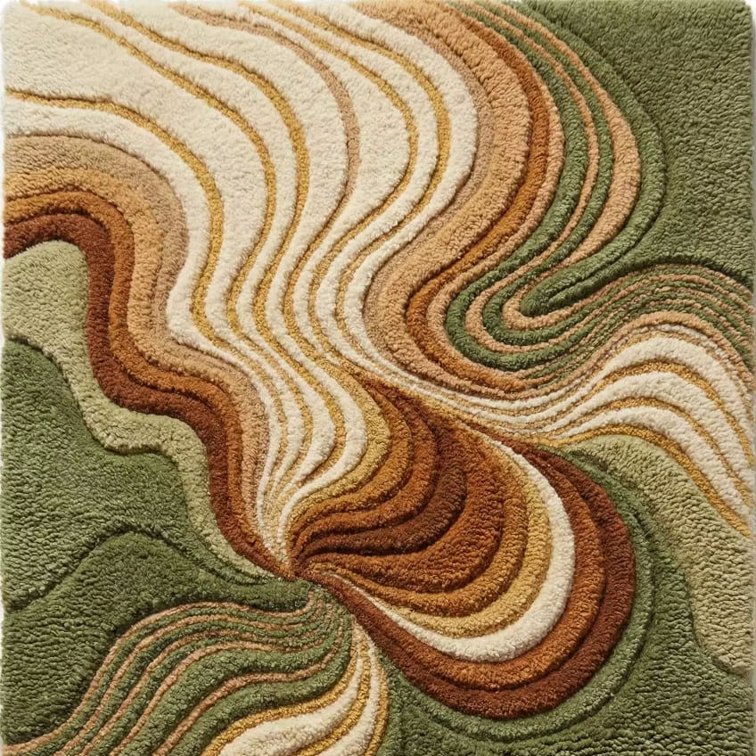 ชื่อสินค้า:พรมขนสัตว์ทอมือ ลายคลื่นสีเขียวและเบจแบบนามธรรม, พรมปูพื้นผิวสัมผัส พรมปูพื้นขนาดใหญ่