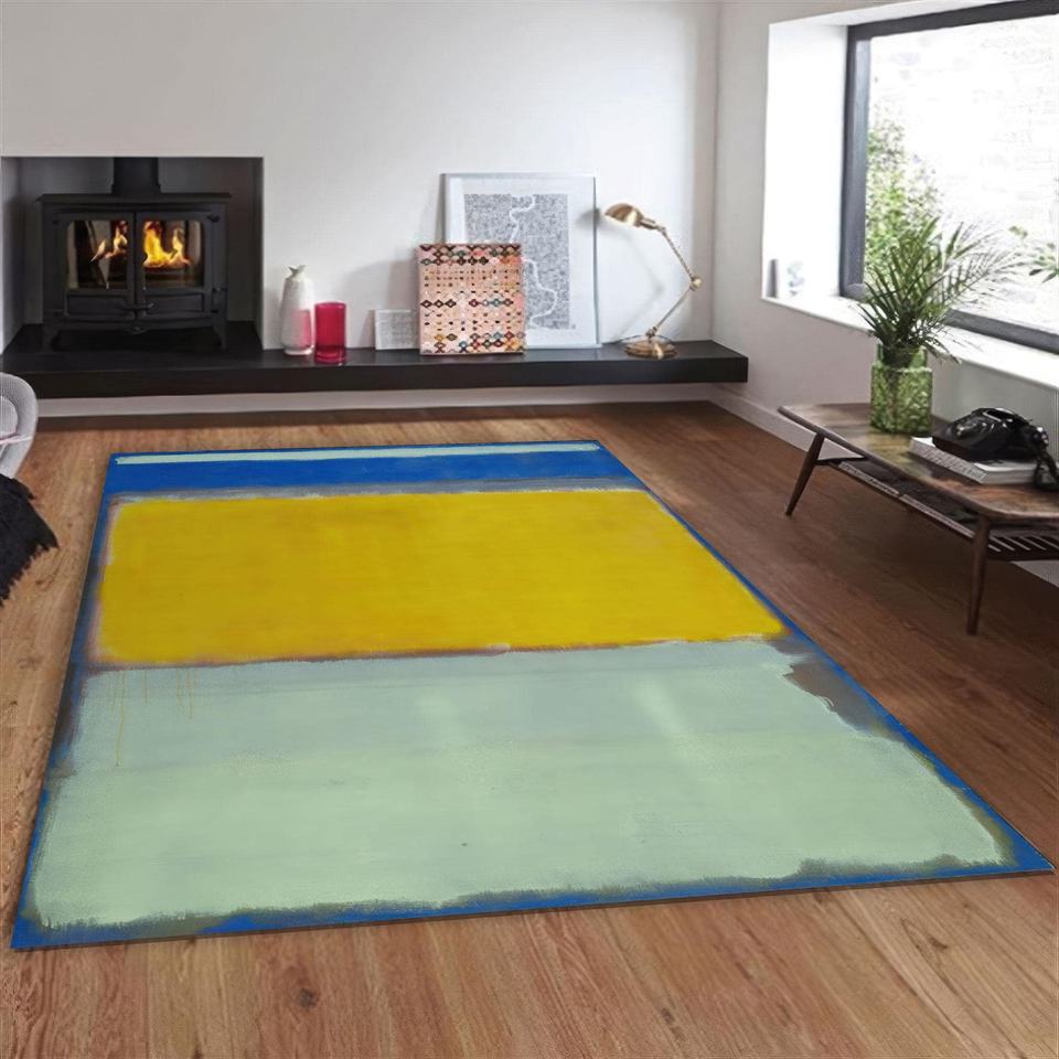 พรมลายเรขาคณิตสีเหลืองและสีน้ำเงิน, พรมปูพื้นสไตล์โมเดิร์นแบบแบ่งสี, พรมเนื้อนุ่มแบบไม่ถักทอ