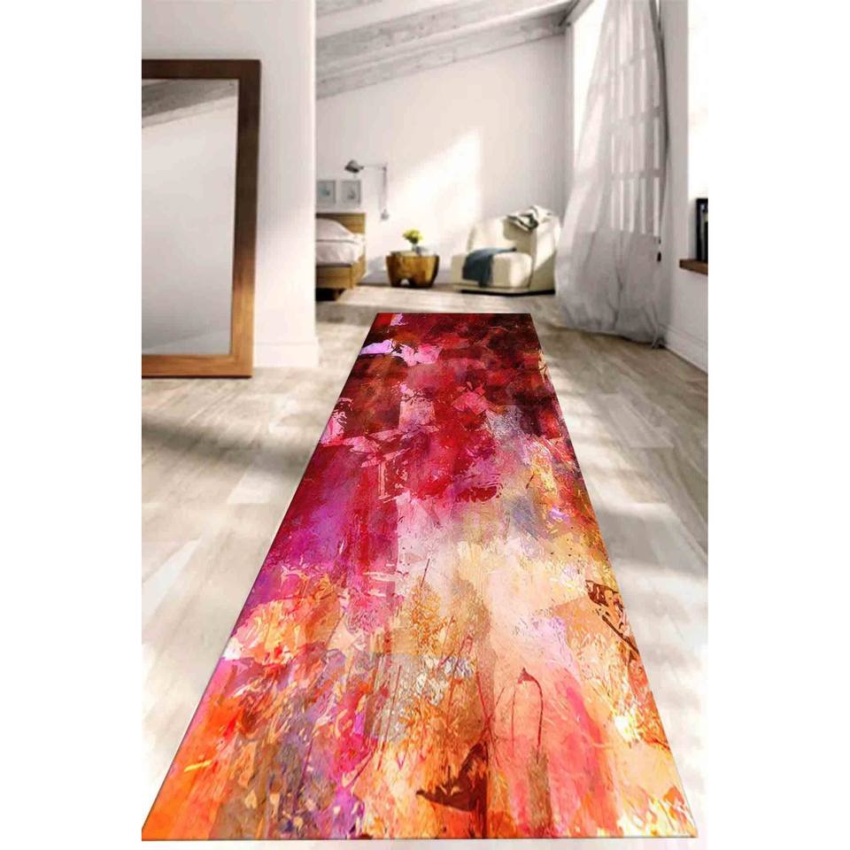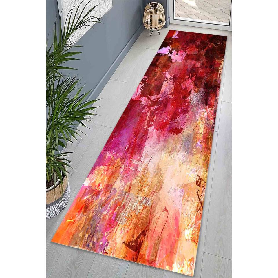 พรมสีเหลืองและชมพูแบบนามธรรม: ดีไซน์ลายปูนปั้นสีสันทันสมัย พรมเนื้อนุ่มแบบไม่ทอ