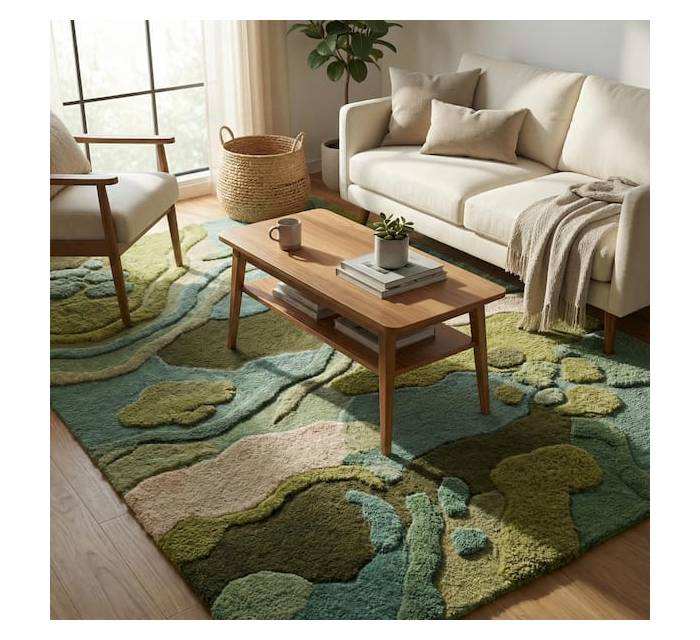 พรมลายคลื่นสีเขียว ลายพรมแบบนามธรรม, พรมห้องนั่งเล่น โฮมเซ็นเตอร์