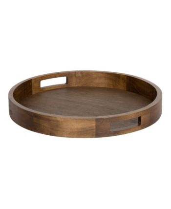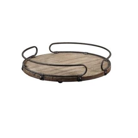 Acacia Cheese Wood Tray with Art Deco Design Home Bar Serving Tray with Round Shape and Metal Handle for Sale