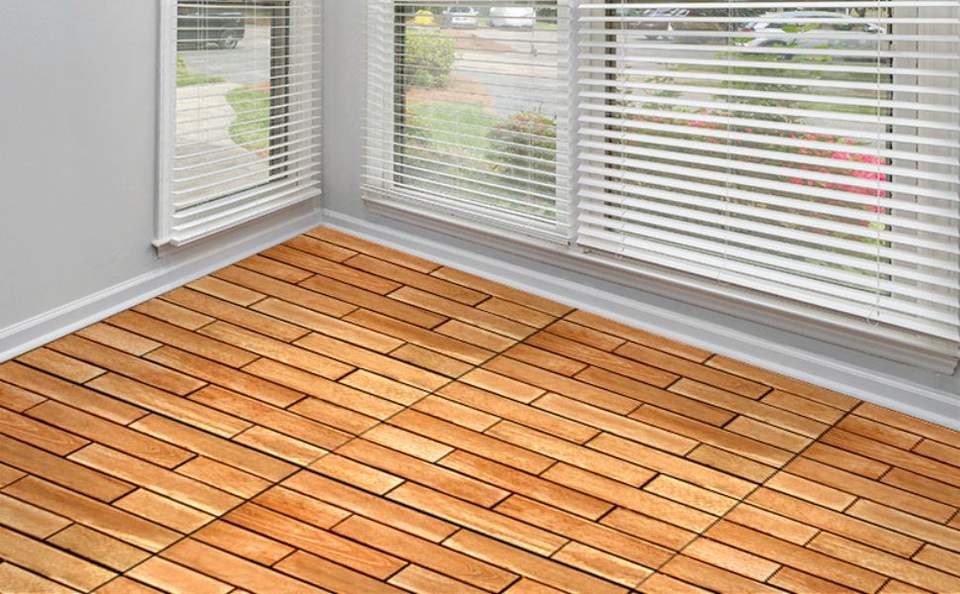 กระเบื้องพื้นไม้กระถินณรงค์ ขนาด 300*300 มม. แบบประกบกันได้ สำหรับตกแต่งพื้นภายนอกและภายในบ้าน สวน ระเบียง และสนามหลังบ้าน