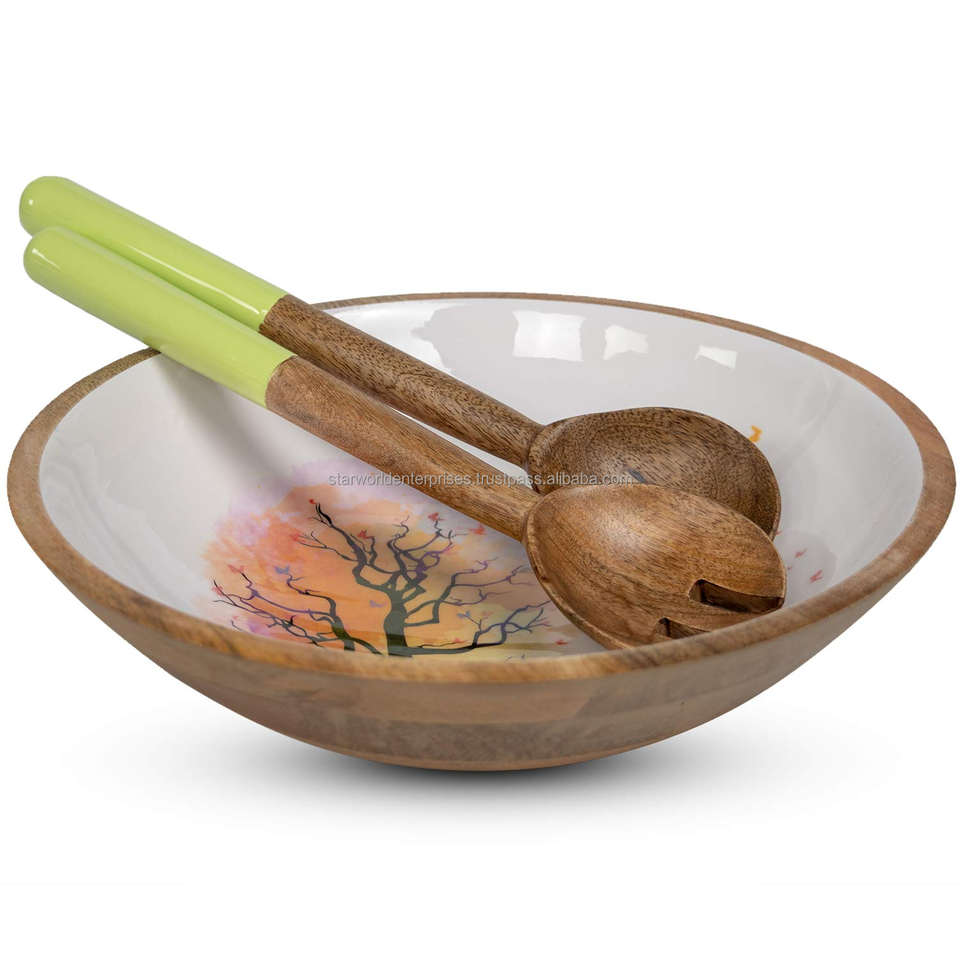 ชามเสิร์ฟพร้อมช้อนทำจากไม้อะคาเซียมม่วงเคลือบเคลือบผิวสำหรับเครื่องครัวจากผู้ผลิตอินเดีย