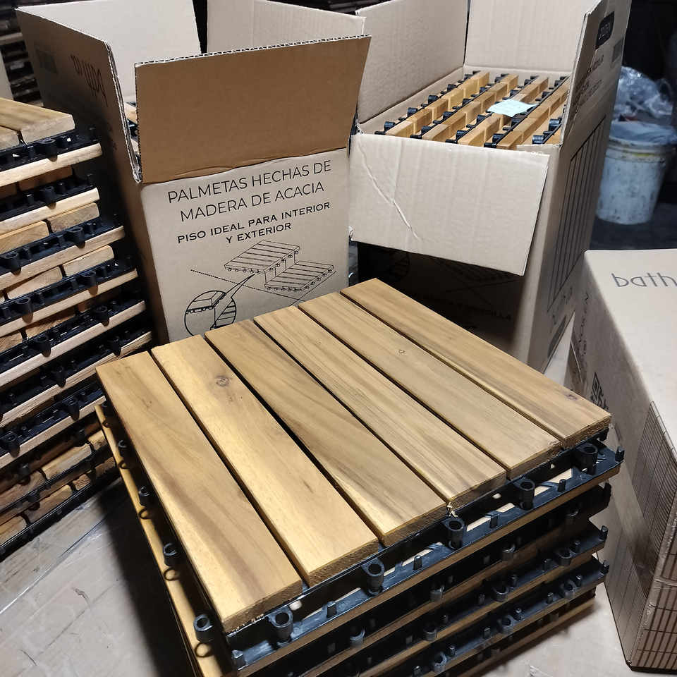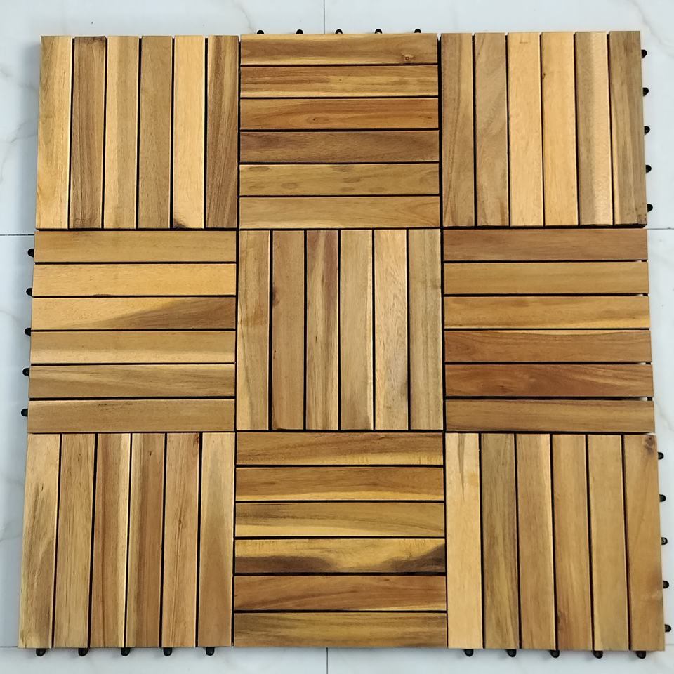 กระเบื้องพื้นไม้สักกันน้ำแบบสี่เหลี่ยมจัตุรัส ขนาด 300x300 มม. ระบบคลิ๊กล็อคสองชั้น ติดตั้งง่าย ใช้ได้ทั้งภายนอกและภายในบ้าน สวน ระเบียง