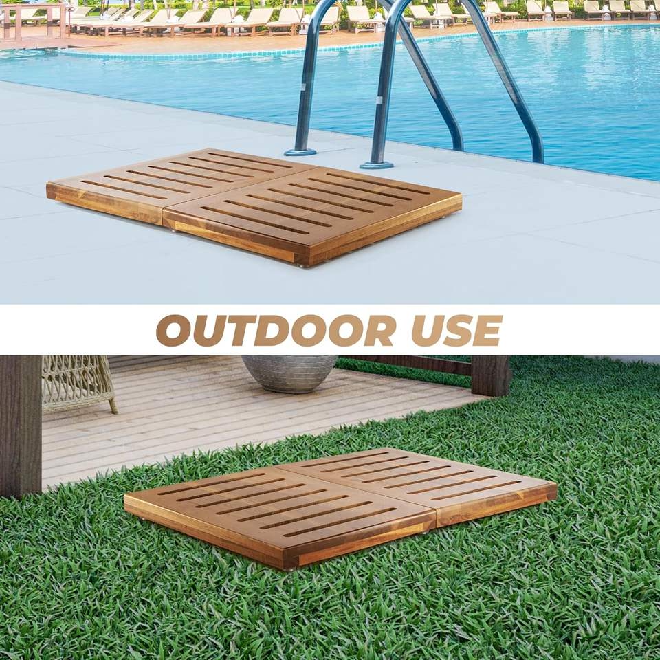 Acacia Wood Bath Mat Large Square Non-Slip Waterproof Bathroom Floor Mat Spa Home Outdoor Shower Mat