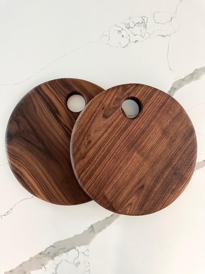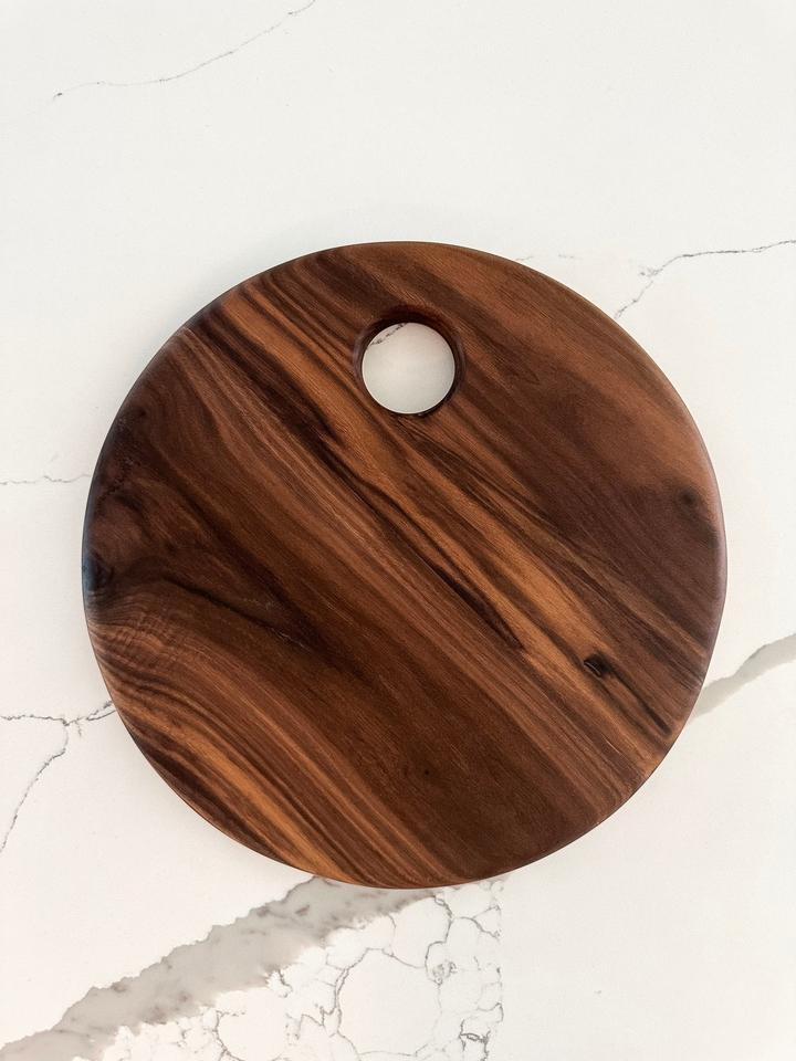 เขียงไม้กระถินทรงกลม พร้อมรูแขวน หนา ทนทาน เหมาะสำหรับการหั่น ตัด และใช้ในครัว