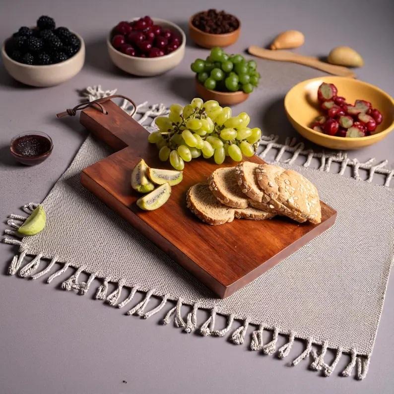 เขียงไม้กระถินทรงสี่เหลี่ยม ดีไซน์แบบพาย หนา ทนทาน ปลอดภัยสำหรับมีด เหมาะสำหรับการหั่น ตัด และเสิร์ฟ ใช้งานในครัวอย่างมีสไตล์