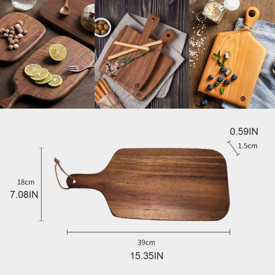 ชุดเขียงไม้กระถินพร้อมด้ามจับ สำหรับเตรียมอาหารและเสิร์ฟในครัว