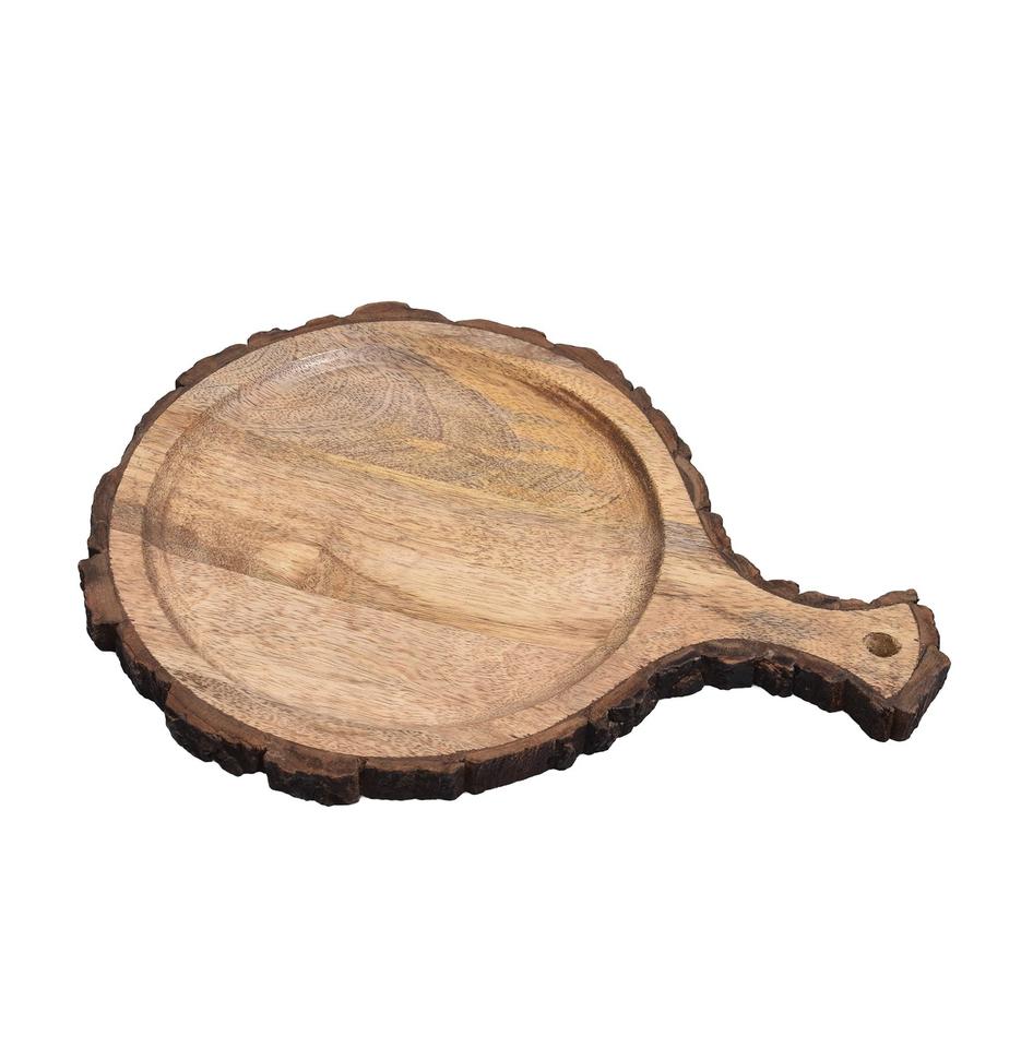 เขียงไม้อะคาเซียพร้อมที่จับสำหรับสับและเสิร์ฟชาร์คิวรีชีสพิซซ่าขนมปังตกแต่งผนัง