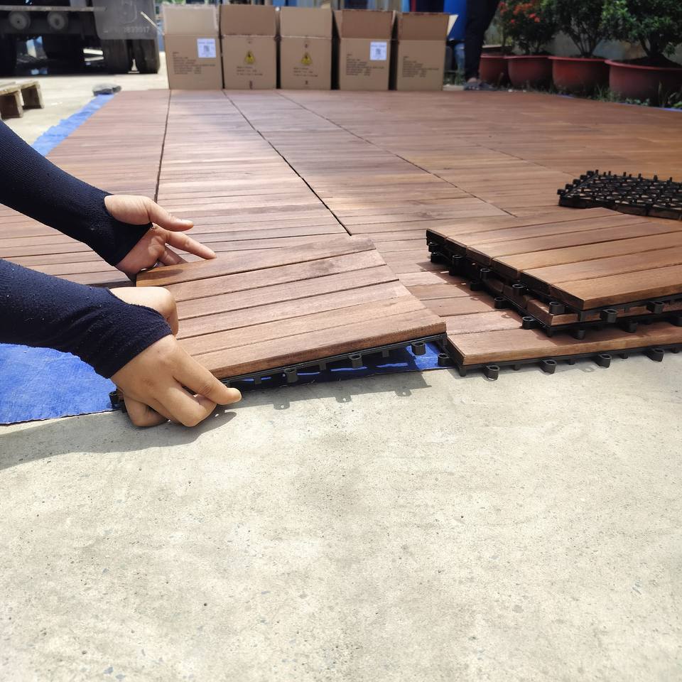 กระเบื้องไม้อะคาเซีย DIY ขนาด300*300มม. สำหรับใช้งานกลางแจ้งสำหรับตกแต่งภายในและภายนอกบ้านสวนระเบียงและสวนหลังบ้าน