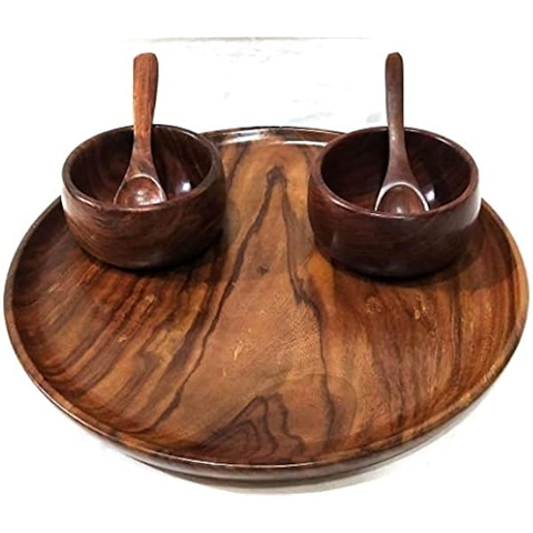 ชุดจานอาหารค่ำไม้อะคาเซีย4ชิ้นกลางจานรับประทานอาหารสำหรับแซนวิชสลัดอาหารโต๊ะรับประทานอาหารค่ำ