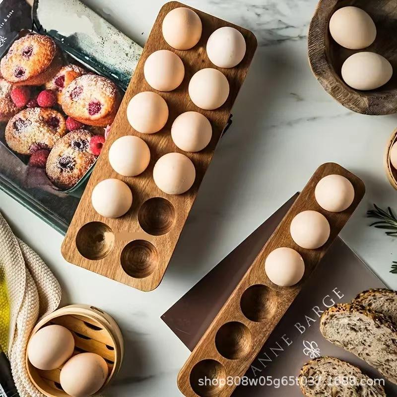 ถาดใส่ไข่ไม้กระถินณรงค์ 8 ช่อง กล่องเก็บอาหารในครัวเพื่อการจัดระเบียบอาหาร
