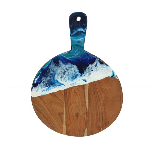 เขียงไม้อะคาเซียอีพอกซีเรซินเกลียวคลื่นแผ่นไม้พายชีสแผ่นเรซินของขวัญสำหรับเตรียมอาหาร