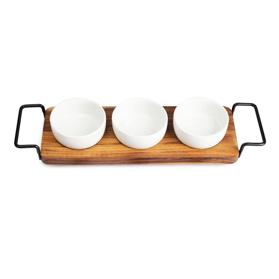 จานเสิร์ฟพร้อมที่จับโลหะทำจากไม้