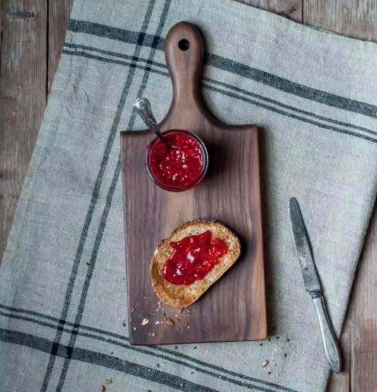 เขียงไม้อะคาเซียสำหรับใช้ในครัวเขียงแข็งสำหรับเสิร์ฟชีสพร้อมด้ามจับเครื่องล้างจาน