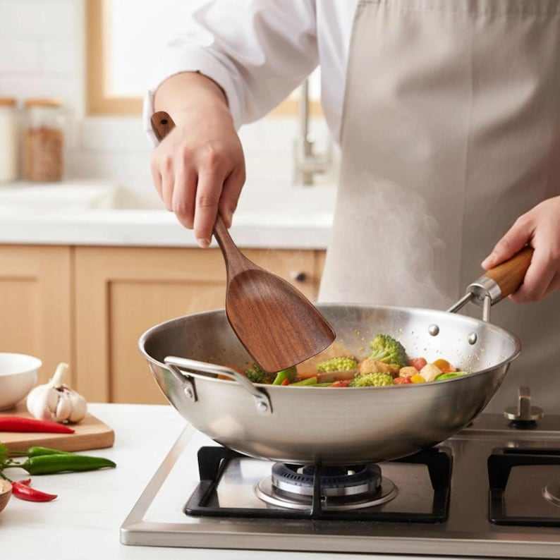ชุดอุปกรณ์ครัวไม้กระถินณรงค์ดีไซน์เรียบง่ายทันสมัย พร้อมที่วาง ใช้กับเครื่องล้างจานได้ วัสดุธรรมชาติ