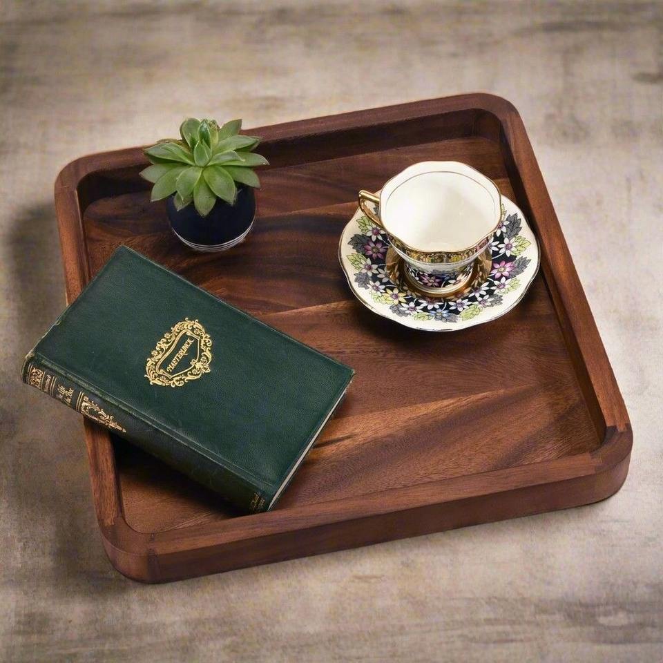 ถาดเสิร์ฟทรงกลมอเนกประสงค์ทำจากไม้อะคาเซีย