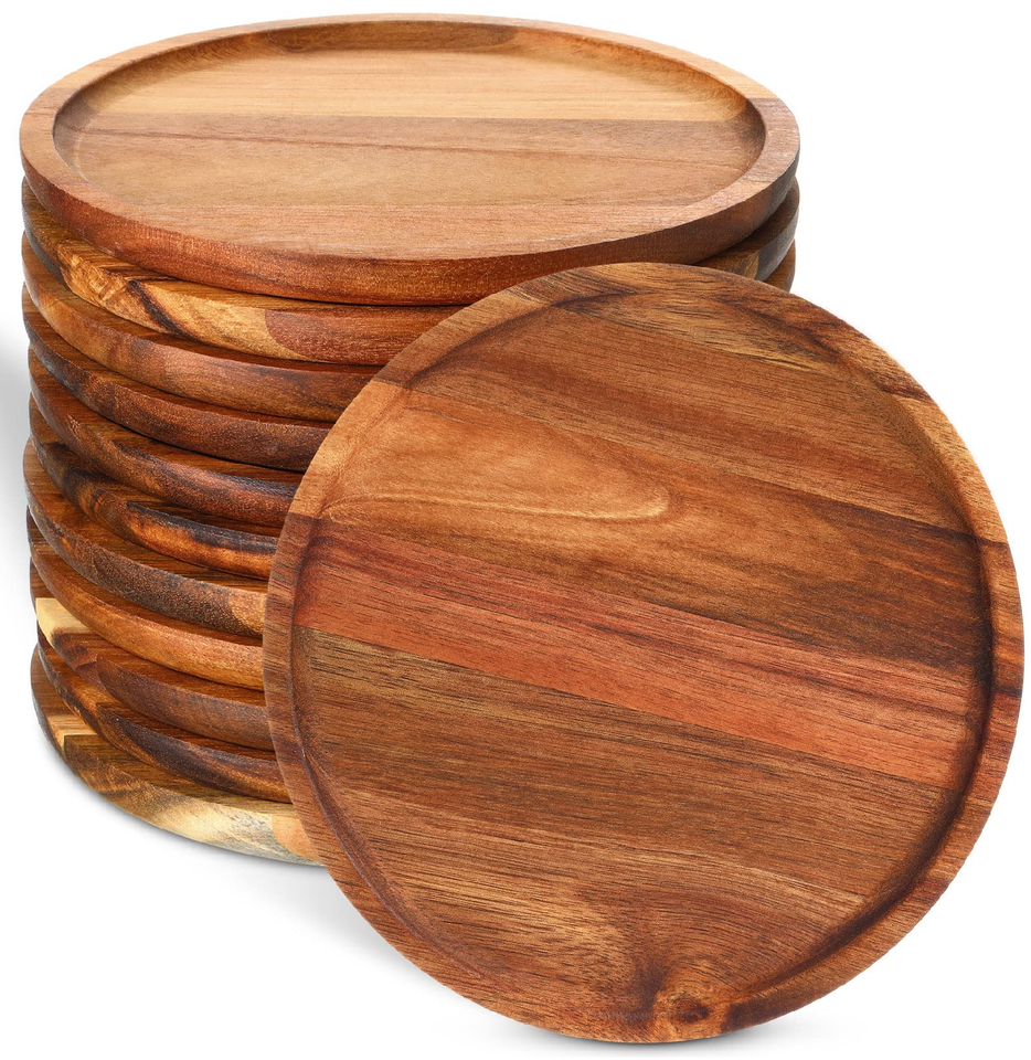 Acacia Wood Plate 5 PCS 100% Natural Wood Decorative Plate Stocked Eco-Friendly High Quality Wood Plates