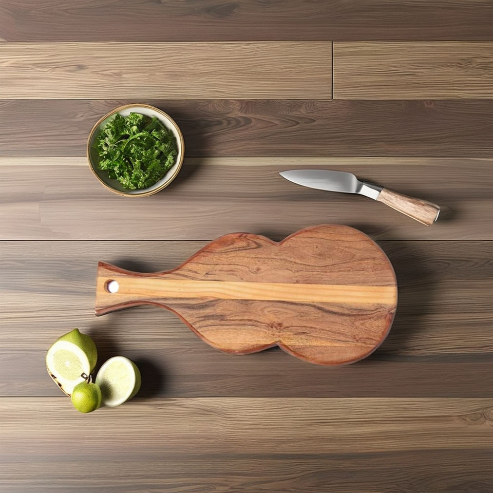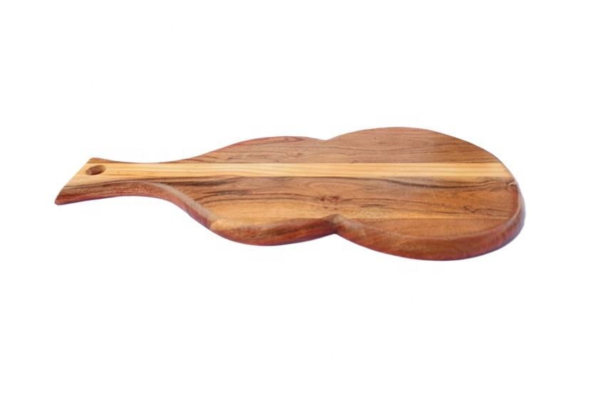 เขียงไม้อะคาเซียสำหรับตัดรูปกีตาร์ไม้เขียงเขียงหั่นชีสบอร์ดเสิร์ฟสำหรับบ้านห้องครัวขายส่งจากอินเดีย