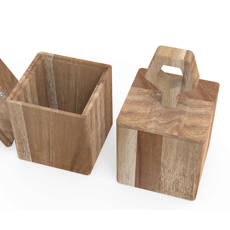 ภาชนะใส่เครื่องเทศทำจากไม้อะคาเซียทรงสี่เหลี่ยมผืนผ้ามีฝาปิดกล่องจัดเก็บชาทำจากไม้ทันสมัยทนทาน