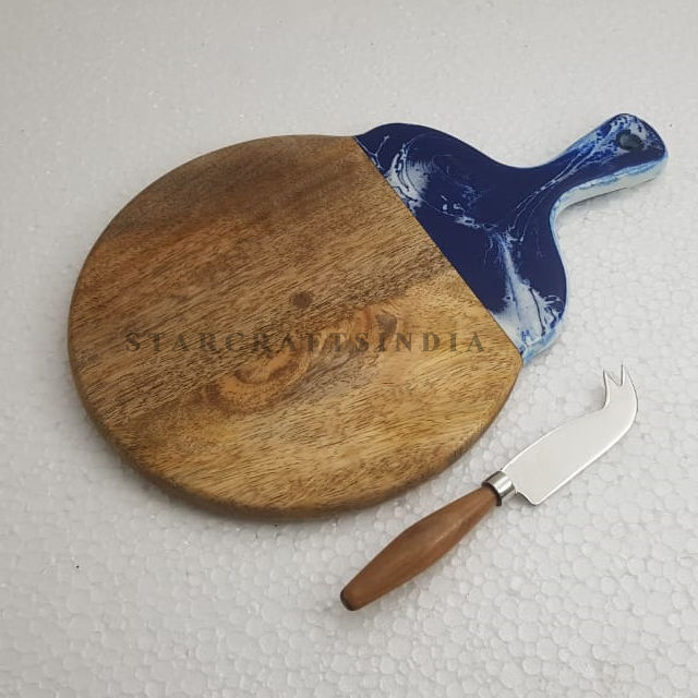 Acacia ไม้และเรซิ่นจับสับบล็อกชีสคณะกรรมการเช่นชีสให้บริการถาดชนิดแขวนที่มีชุดมีด