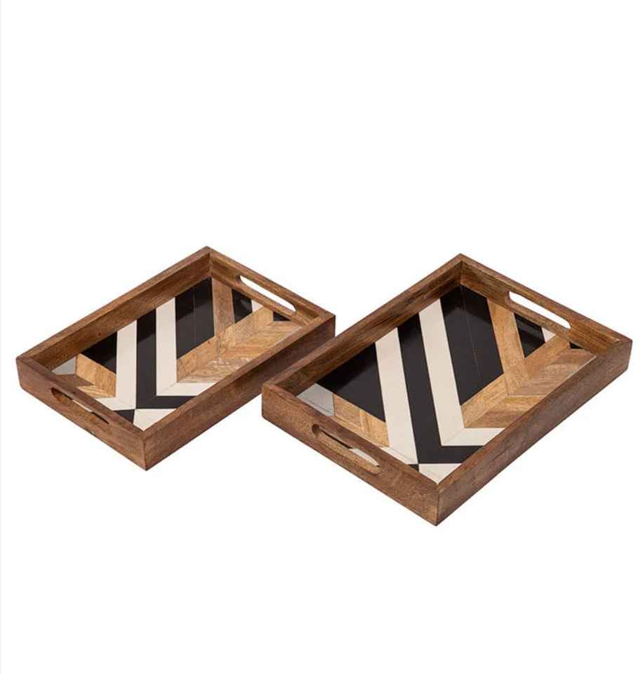 ถาดเสิร์ฟแบบฝังทำจากไม้อะคาเซียถาดสำหรับตกแต่งโต๊ะกาแฟเครื่องครัวสำหรับใช้ในครัวซื้อจากอินเดีย