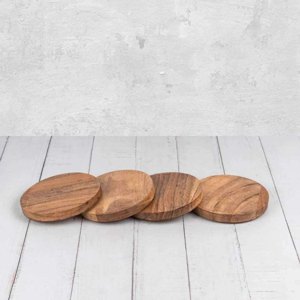 ไม้อะคาเซียรองแก้วกลม ป้องกันโต๊ะ เคาน์เตอร์ และพื้นผิวจากรอยน้ําหรือความเสียหาย | ตกแต่งบ้านและสํานักงาน
