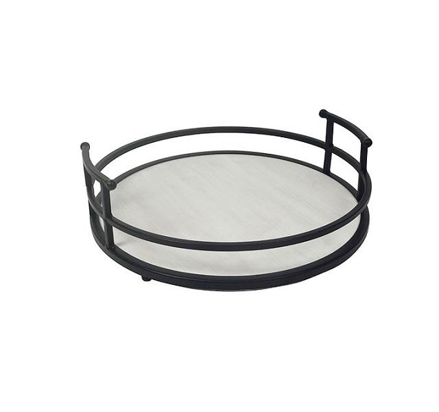 ถาดแผ่นทรงกลมไม้อะคาเซียพร้อมที่จับโลหะจากผู้ผลิตในอินเดีย