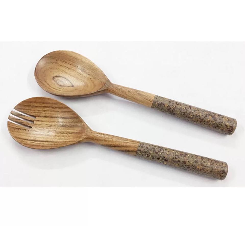 ชุดเซิร์ฟสลัดไม้อะคาเซียพร้อมด้ามหินเครื่องมือเสิร์ฟ & ตกแต่งโต๊ะในห้องครัวพร้อมชุดช้อนและส้อมวัสดุที่เป็นมิตรกับสิ่งแวดล้อม