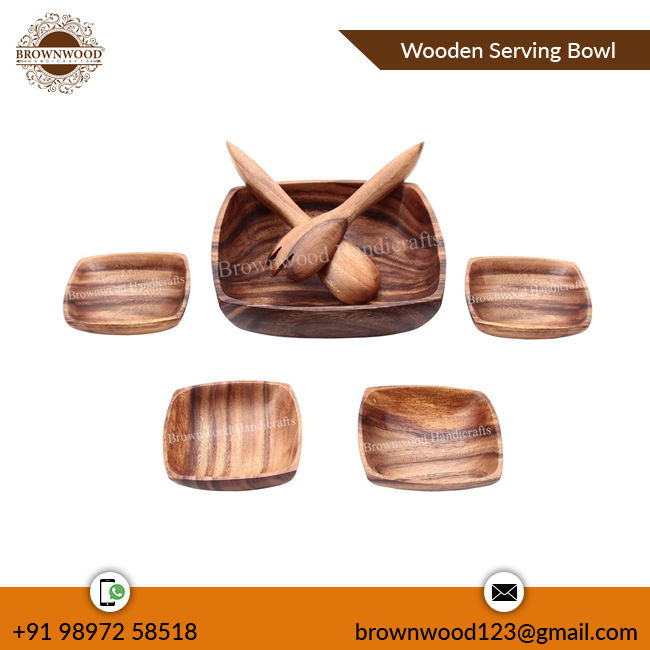 ชุดชามไม้อะคาเซียสำหรับร้านอาหารใช้ในบ้านผู้ผลิตจากอินเดียผู้จัดจำหน่ายชั้นนำ