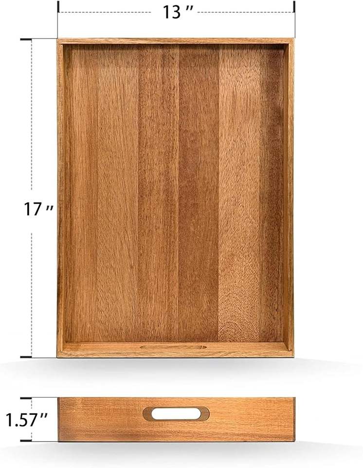 ถาดเสิร์ฟไม้กระถินพร้อมหูจับ ถาดเสิร์ฟตกแต่งสำหรับอาหารเช้าในครัวบ้าน