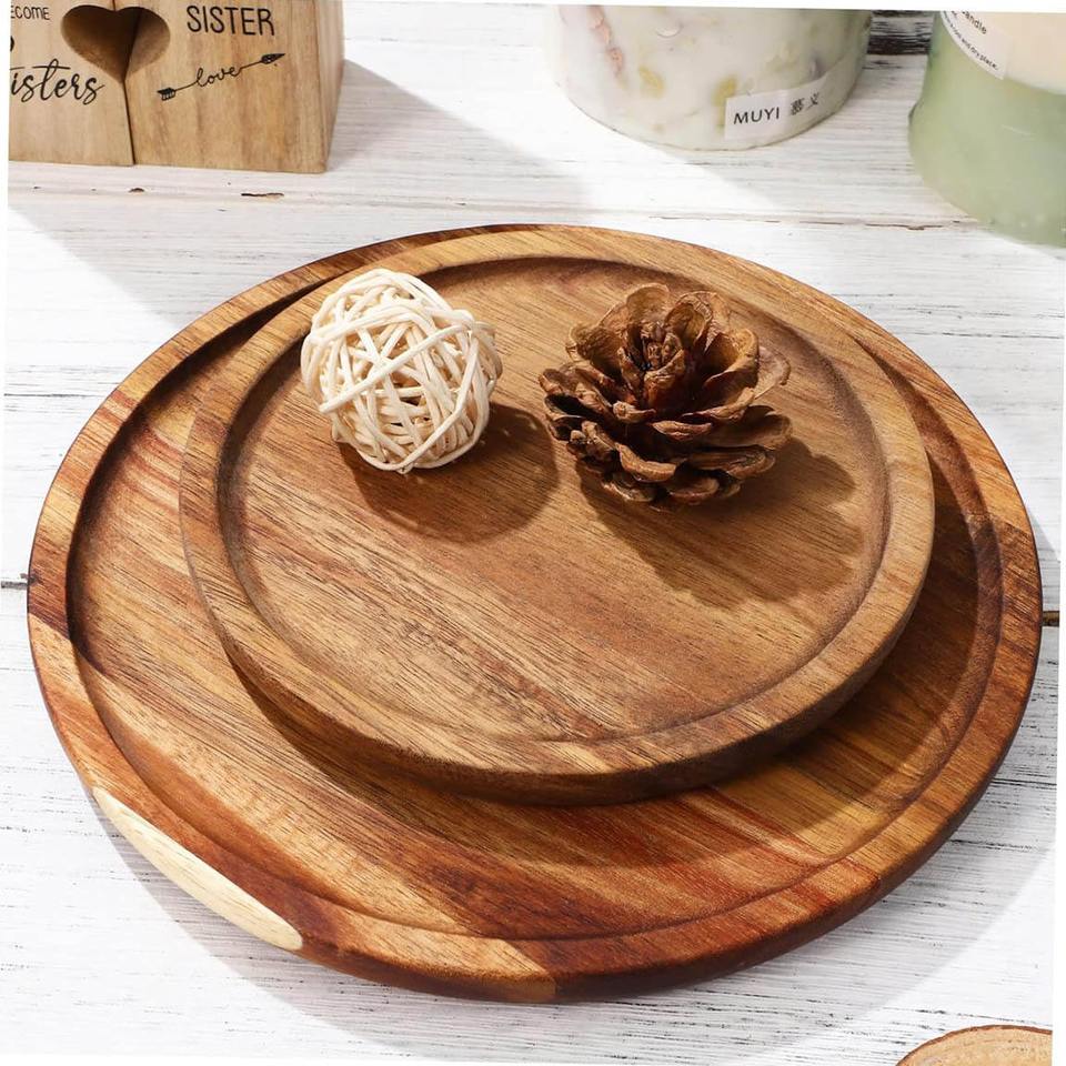 ถาดไม้กระถินณรงค์สำหรับจัดเก็บ จานหมุนไม้ ชั้นวางเครื่องเทศขอบสูง ทันสมัยอเนกประสงค์ สำหรับห้องครัวและโต๊ะอาหาร