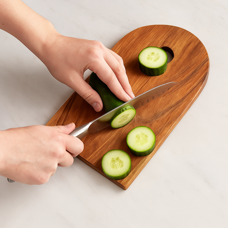 เขียงไม้อะคาเซียรูปตัวยูสีน้ำตาลเป็นมิตรกับสิ่งแวดล้อมบล็อกหั่นสี่เหลี่ยมและสี่เหลี่ยมสำหรับตัดอาหาร
