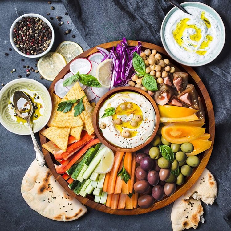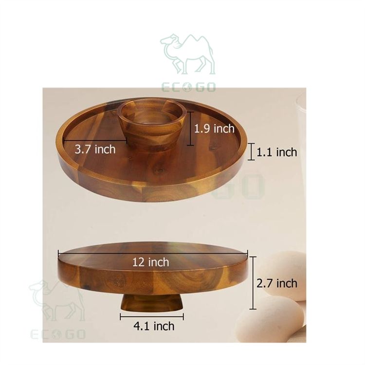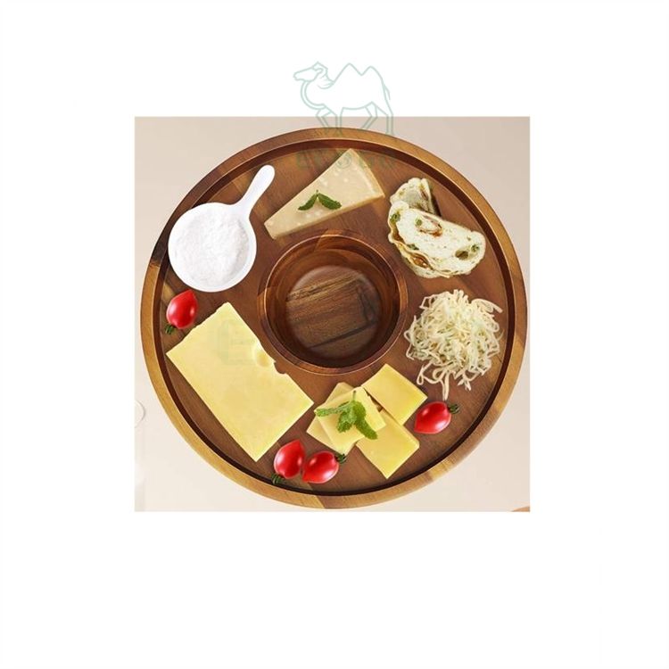 จานอาหารผักไม้อะคาเซียพร้อมชามกลมถาดเสิร์ฟไม้ไผ่ถาดตกแต่งบ้าน