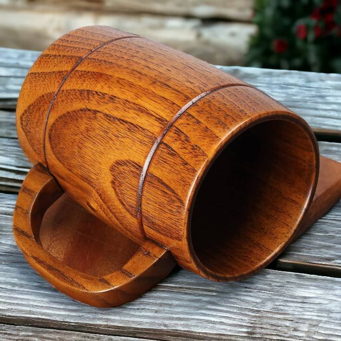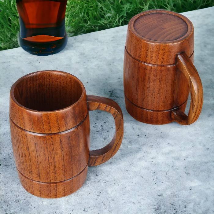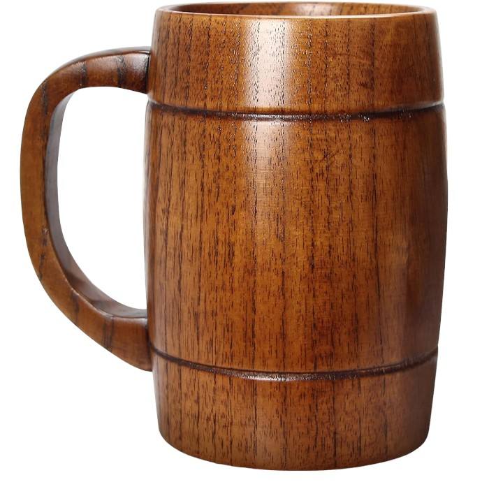 แก้วเบียร์ไม้ไวกิ้งไม้อะคาเซียพร้อมด้ามจับด้ามจับถนอมอาหารปลอดภัยแก้วมักลายไม้สแกนดิเนเวียนเป็นมิตรกับสิ่งแวดล้อมสไตล์ธรรมชาติ