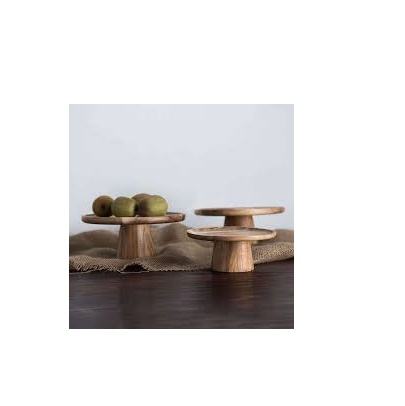 แท่นวางเค้กไม้อะคาเซียแบบทันสมัยพร้อมฝาม้วนที่วางคัพเค้กไม้ทรงกลม3ขนาดแตกต่างกัน
