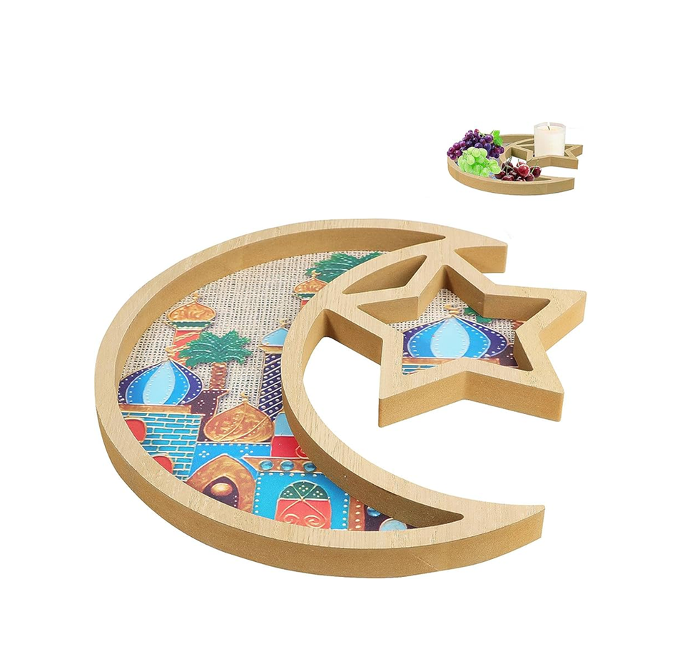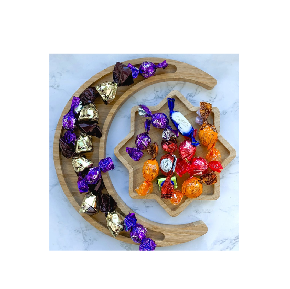 ชุดจานเสิร์ฟขนมปังผลไม้รูปพระจันทร์และดาว ทำจากไม้กระถินเทศ สำหรับเสิร์ฟเนย ชีส และอาหารค่ำ