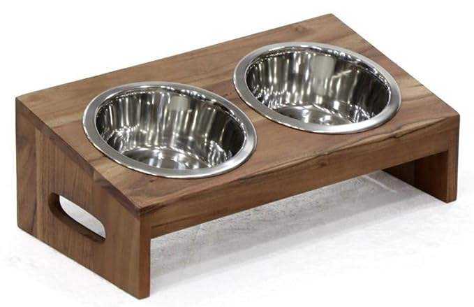 ชามอาหารสัตว์เลี้ยงทำจากไม้อะคาเซียพร้อมแท่นยกสูงชามให้อาหารสัตว์เลี้ยงทำจากสแตนเลส