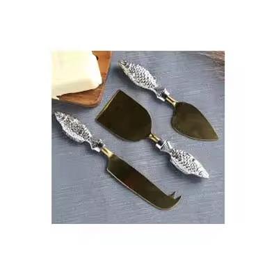 มีดหั่นชีสด้ามกลมไม้อะคาเซียชุดชีสใบมีดสีทองคุณภาพเยี่ยม