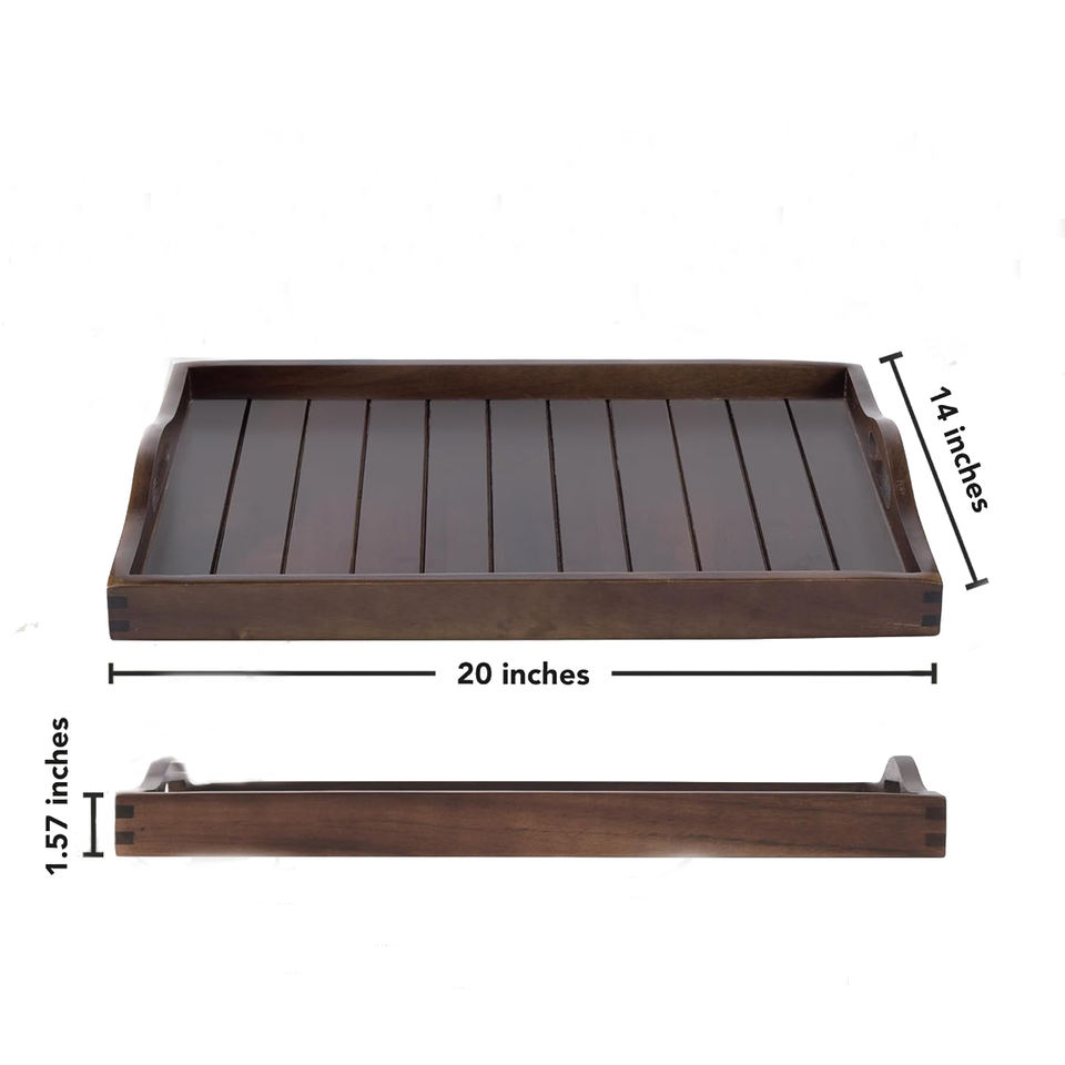 Large Wooden Serving Tray With Cutout Handles