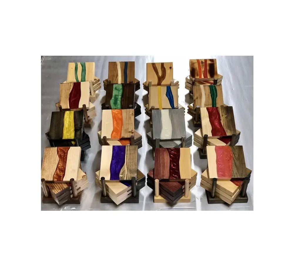ถาดรองแก้วทำจากเรซินไม้อะคาเซียทรงสี่เหลี่ยมสำหรับรองแก้วผักในห้องครัว