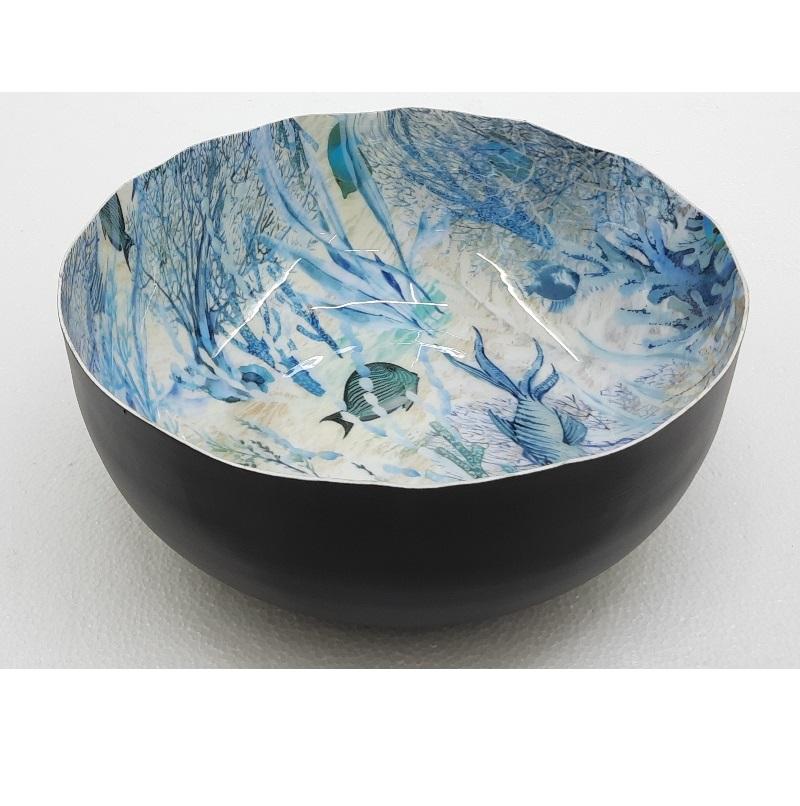 Acacia Wooden and Meena Work Kitchenware Bowl Deluxe Quality Round Shape Solid Wood Tabletop Dinnerware Bowl