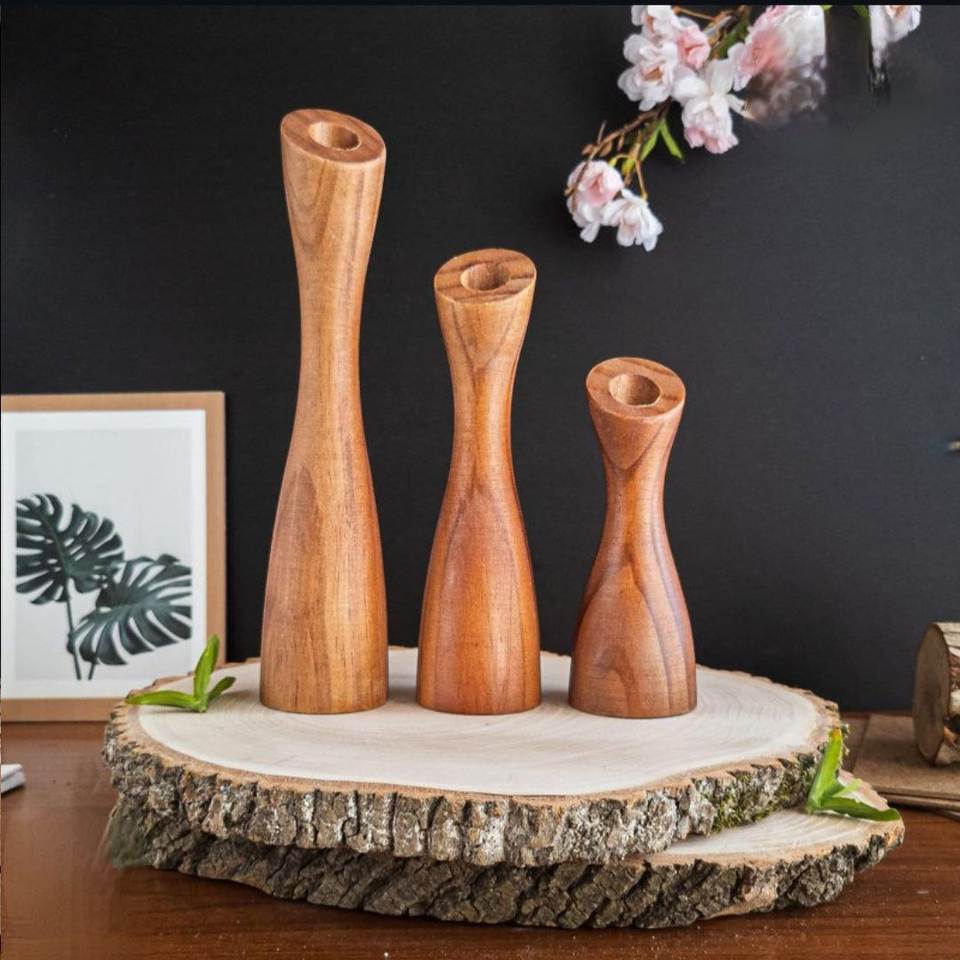 เชิงเทียนไม้ธรรมชาติ Acaia ทำมือ สำหรับเทียนทีไลท์ ของตกแต่งบ้าน ของตกแต่งคริสต์มาส ของขวัญ ราคาดีที่สุด